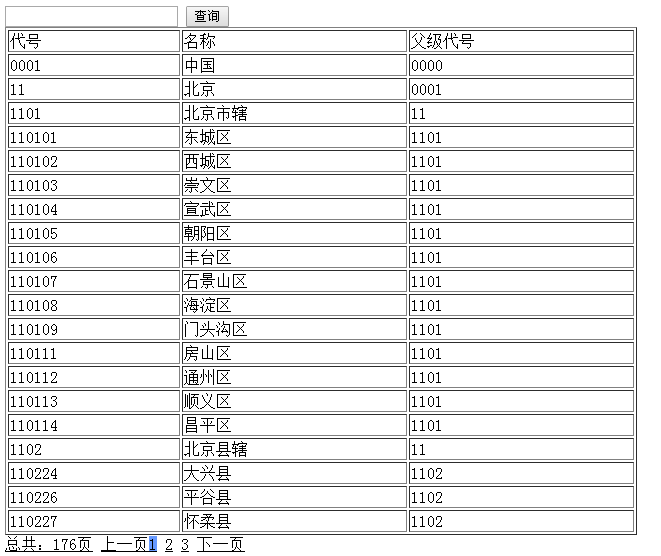 在上方的文本框中输入关键词会显示出相关的信息。这就是我们用ajax做的分页。
