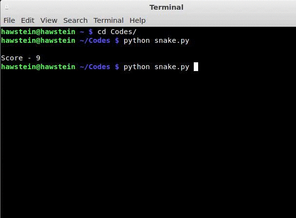 为了尽量保持简单,我用的是curses模块,直接在终端进行绘图。 从上面的动态图片可以看出,每次都单纯地使用BFS,最终有一天, 贪吃蛇会因为这种不顾后果的短视行为而陷入困境。 而且,即使到了那个时候,它也只会BFS一种策略, 导致因为当前看不到目标(食物),认为自己这辈子就这样了,破罐子破摔, 最终停在它人生中的某一个点,不再前进。(我好爱讲哲理XD)