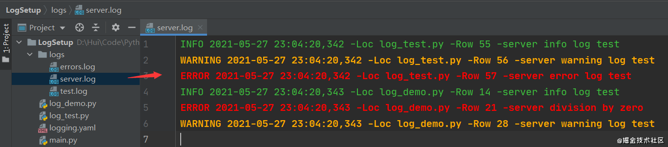 其他模块直接使用 logging.getlogger('server') 就可获取我们配置好的日志器。