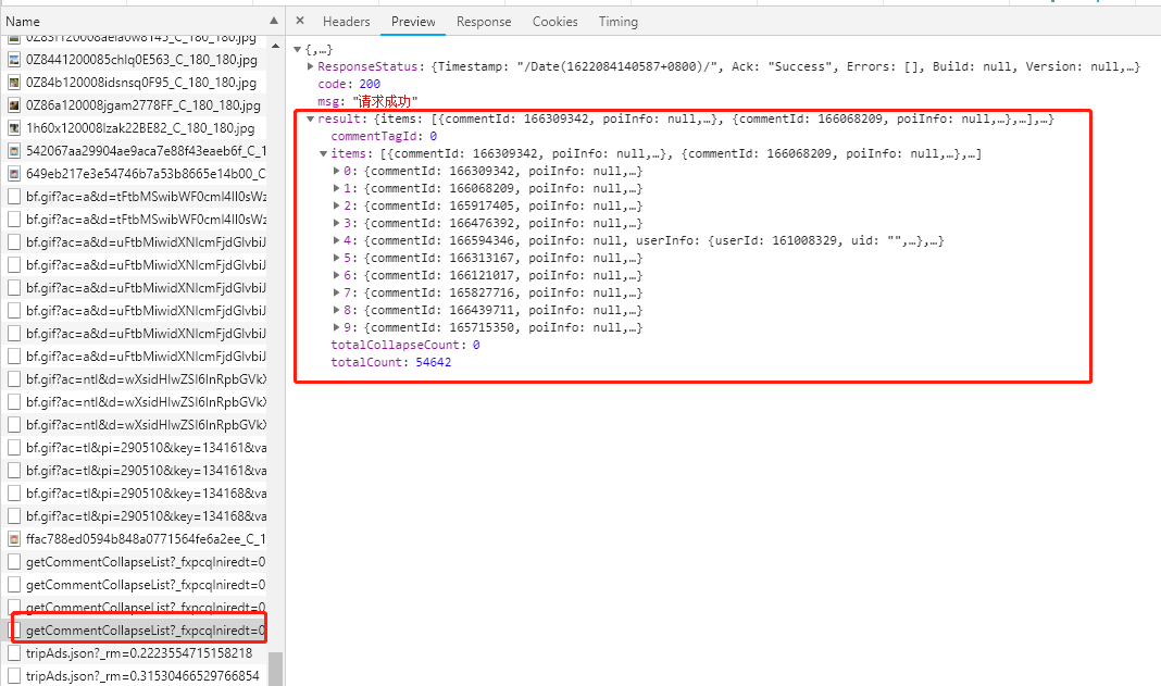 查看preview里面的内容(请求返回内容)