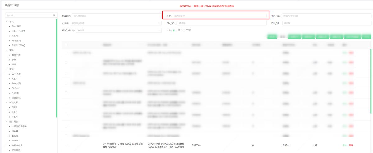 项目需求:点击产品树节点时获取该节点的所有父节点,同时回填表格的搜索条件,完成搜索功能,搜索结果展示在下方的table中。