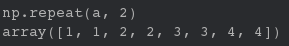 np.repeat(a, 2) # 所有元素依次复制相同的次数
