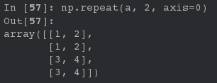 np.repeat(a, 2, axi=0) # 所有沿着0维的元素依次复制相同的次数