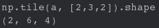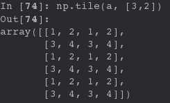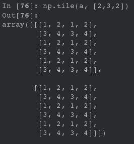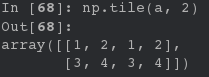 in [26]: arr3 = np.arange(4) in [27]: arr3 out[27]: array([0, 1, 2, 3]) in [28]: np.tile(arr3,2) out[28]: array([0, 1, 2, 3, 0, 1, 2, 3])