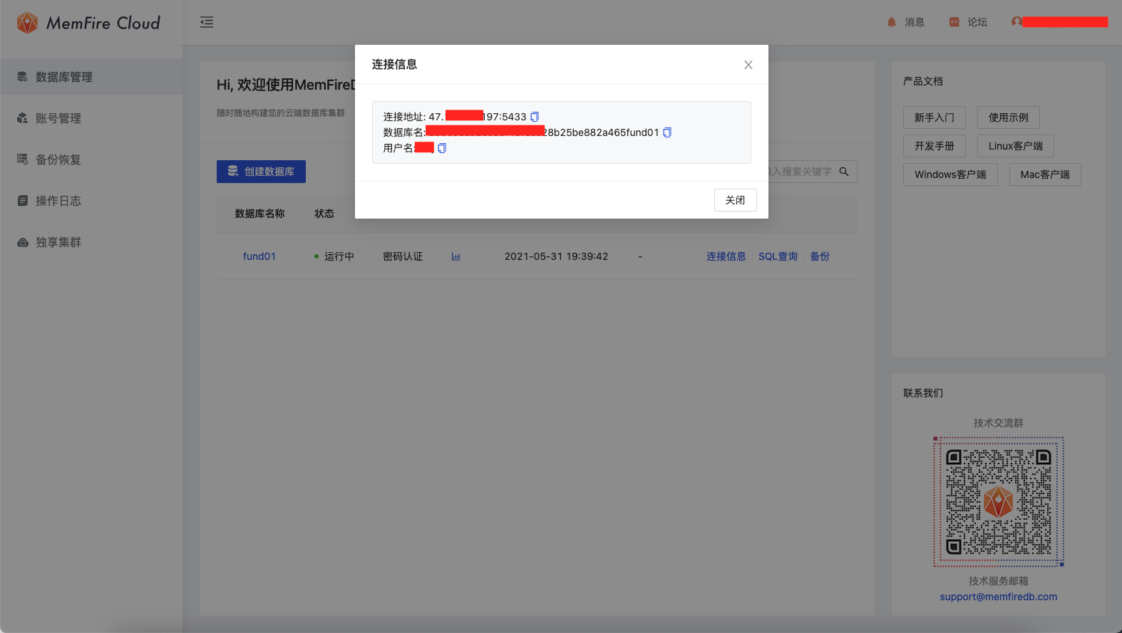 10.准备一个数据库,用于存储数据和对数据进行筛选分析。这里推荐一个方便的云数据库,一键创建,一键查询,十分方便,而且是免费的哦。前往memfiredb注册一个账号就能使用。注册邀请码:6mxjl6、6myjgy;