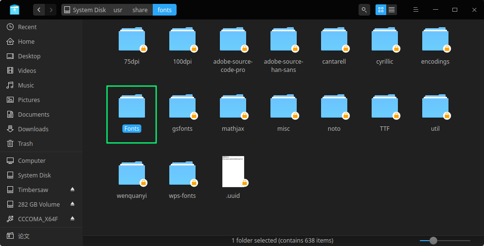 cd到/usr/share/fonts/fonts,也就是拷贝来的文件夹, 建立字体索引信息,更新字体缓存,让字体生效, 运行命令:
