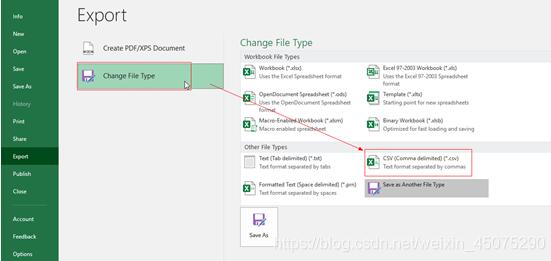 点击“change file type”,即“改变文件格式”,选择"csv",进行导出即可;