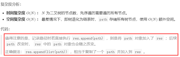 if target == 0 and not root.left and not root.right: res.append(list(path)) # 注意:使用list来对当前path实例化,若直接传入path,则相当于浅拷贝!