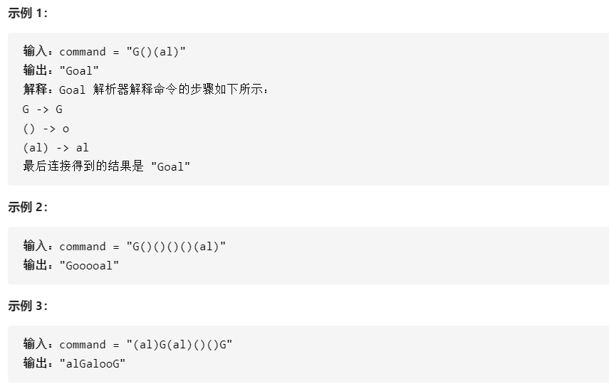 给你字符串 command ,返回 Goal 解析器 对 command 的解释结果。