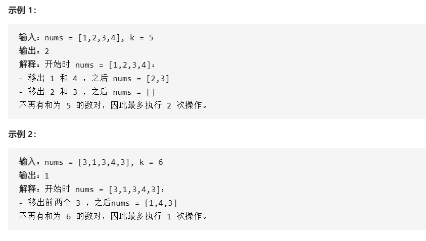 每一步操作中,你需要从数组中选出和为 k 的两个整数,并将它们移出数组。