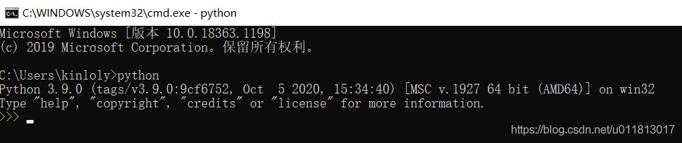 打开cmd,输入python,如果结果如下图所示则表示安装成功!