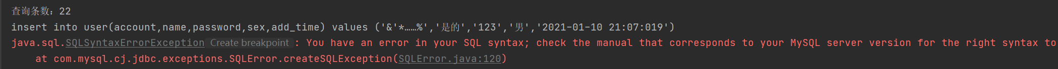 2、新增时,:用户名输入特殊字符 : &'*……%。数据报错,发现后台没有做特殊字符过滤。