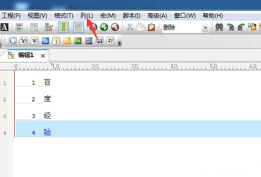 然后进行点击ultraedit菜单中的 列 的选项菜单。