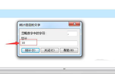 这样就会弹出了一个统计选定的文字,可以看到的显示为总计内容的求和统计。