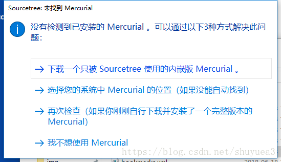 如果使用git客户端,选择我不想使用mercurial即可.