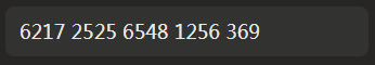 self.bankcard = value.slice(0, 4) + ' ' + value.slice(4, 8) + ' ' + value.slice(8, 12)+ ' ' + value.slice(12, 16) + ' ' + value.slice(16, value.length)