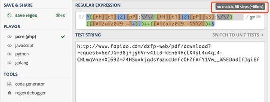 我们可以发现正则表达式校验协议 http:// 这部分是没有问题的,但是在校验 www.fapiao.com 的时候,其使用了 xxxx. 这种方式去校验。那么其实匹配过程是这样的: