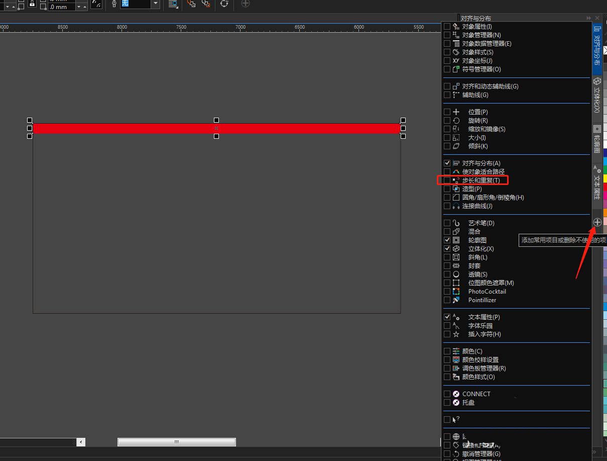 找到右方的一个+号图标,展开来找到步长和重复,在前面的方框内点上对勾