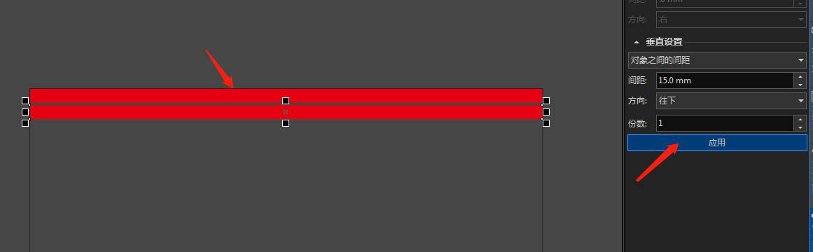 步长和重复的对话框,在水平设置里我们选择为无偏移,(水平设置是向左右偏移),垂直设置里选择对象之间的间距。