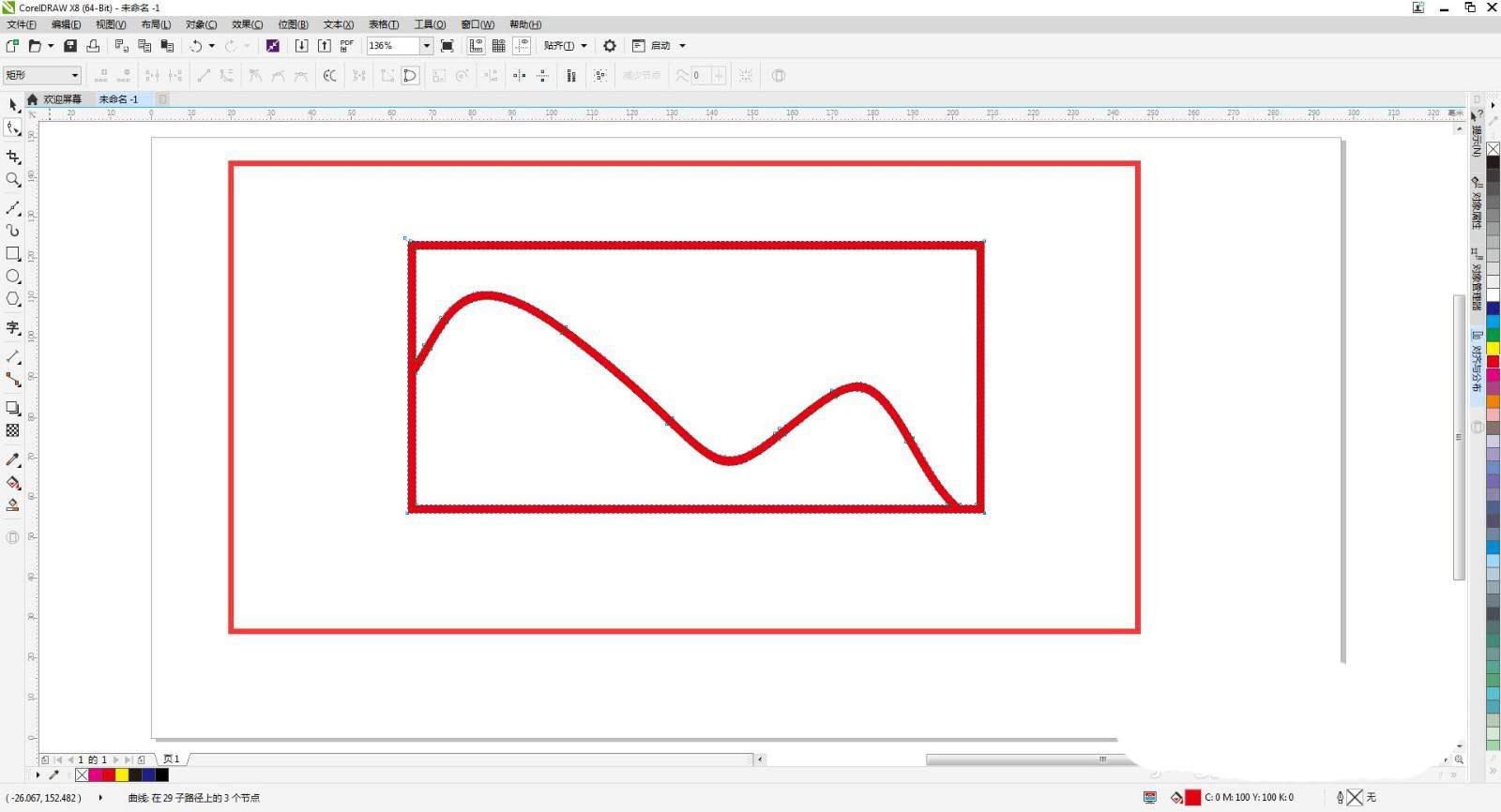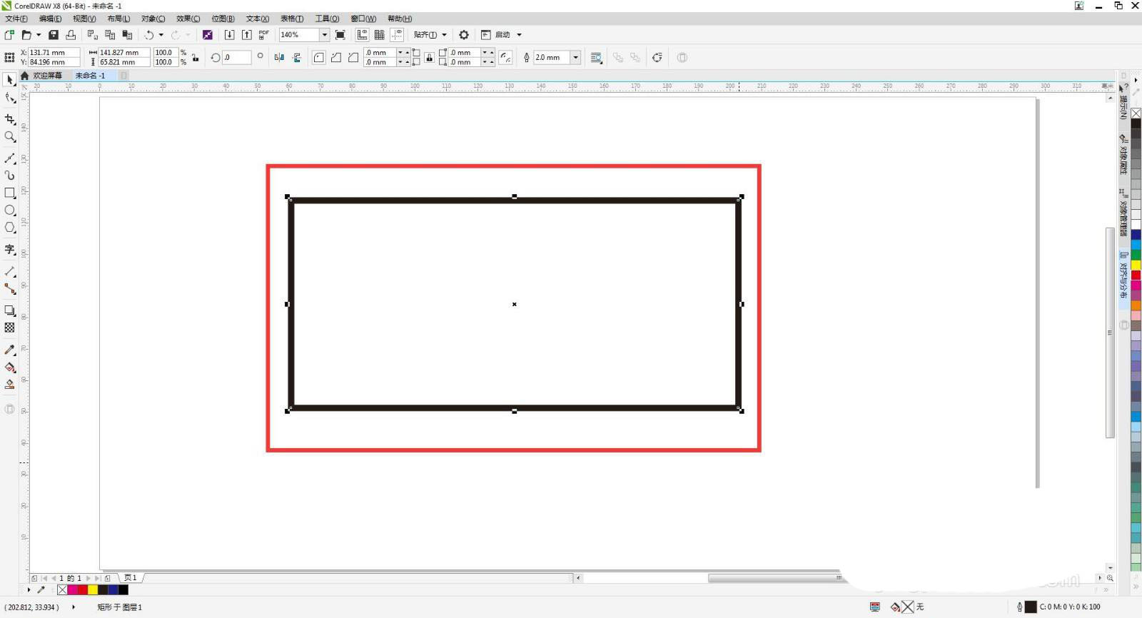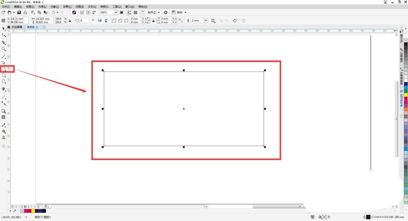 首先打开cdr软件新建文档,点击矩形工具绘制一个矩形。