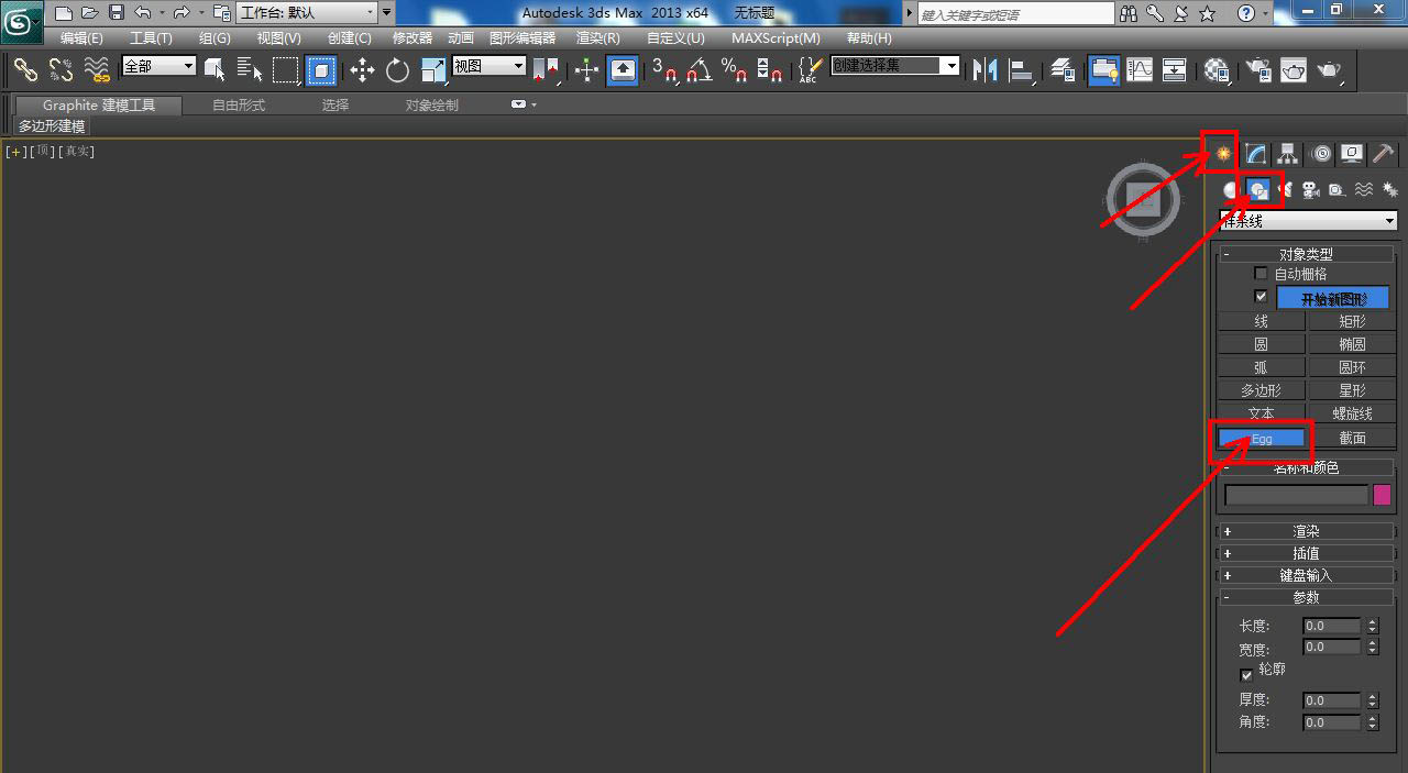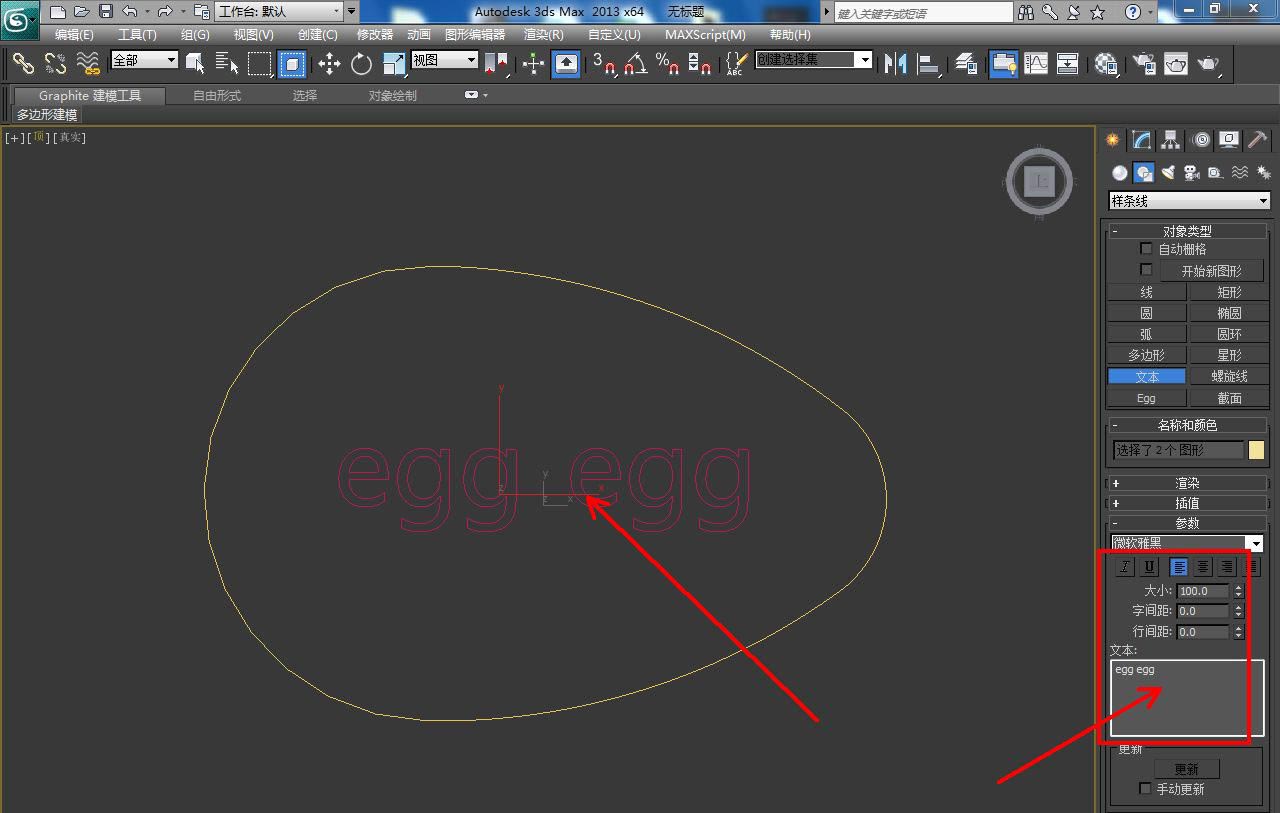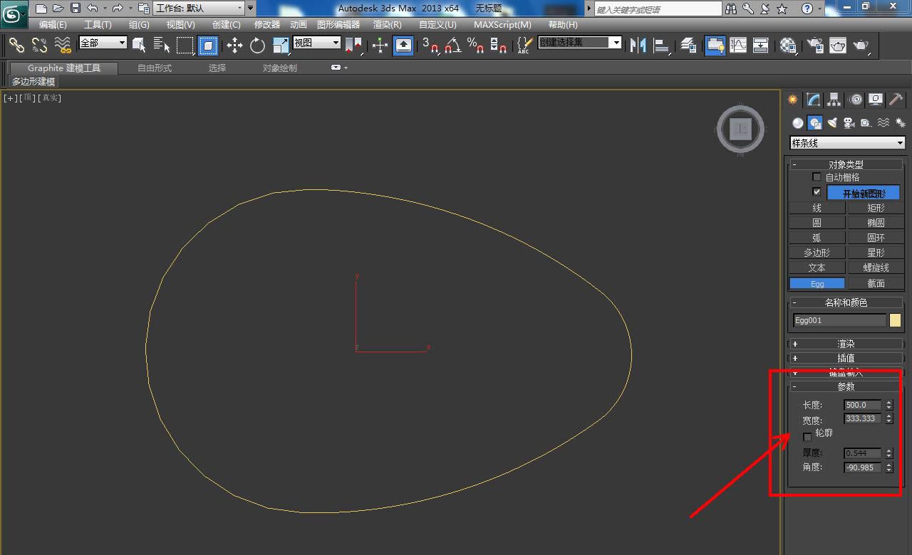 点击【创建】-【图形】-【egg】,按图示绘制一个蛋形图案并设置好蛋形的各个参数;