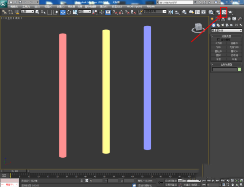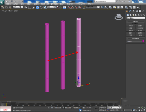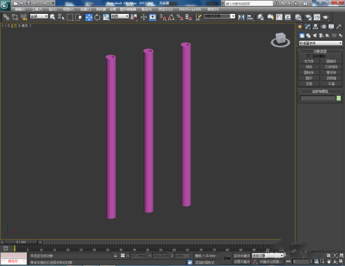 2、点击【创建】-【几何体】-【管状体】,按图示在作图区域绘制出一个管状体模型。完成后,按住键盘【shift】键拉动复制出另外两个管状体模型;