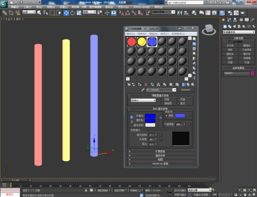 4、按图示依次设置出黄色发光材质和蓝色发光材质并进行模型材质附加。完成后,点击【渲染】将发光管模型渲染出图即可。以上就是关于3dmax发光管制作的所有介绍。