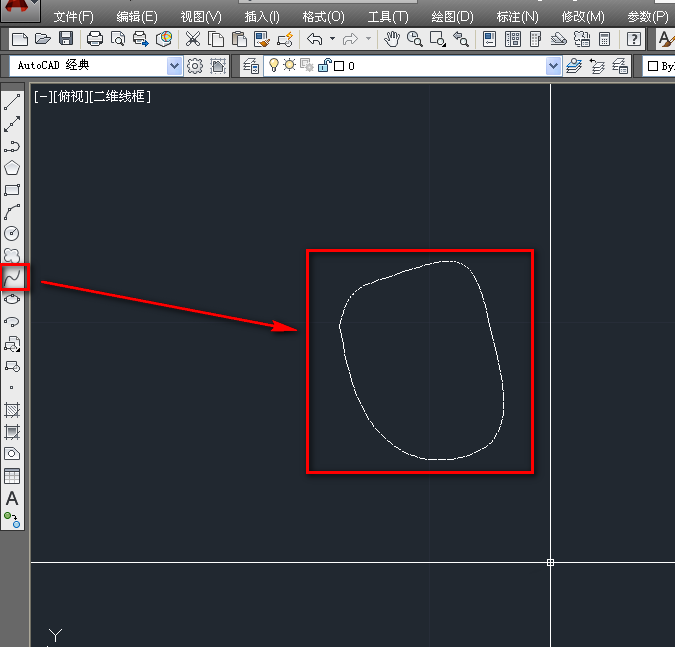 1、打开cad,使用样条曲线工具绘制一个不规则圆形,如下图。