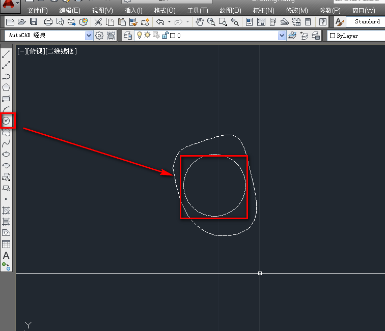 2、使用圆工具,在不规则圆中绘制一个圆,如下图。