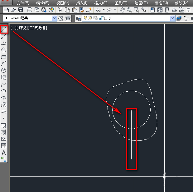 3、使用直线工具,绘制一条经过圆心的直线段,如下图。