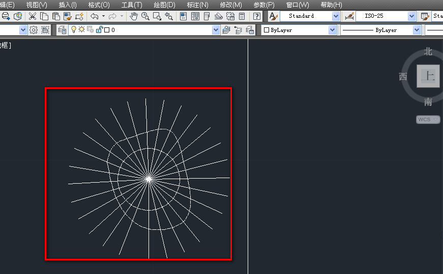 5、然后再次使用镜像工具,以刚镜像的直线段为镜面多次镜像,得到一个铺满圆的直线簇,如下图。