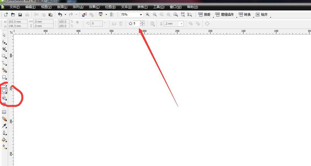 1、新建文件设置多边形。首先启动coreldraw软件,新建一个文件,然后在工具栏选择多边形工具,在属性栏设置6