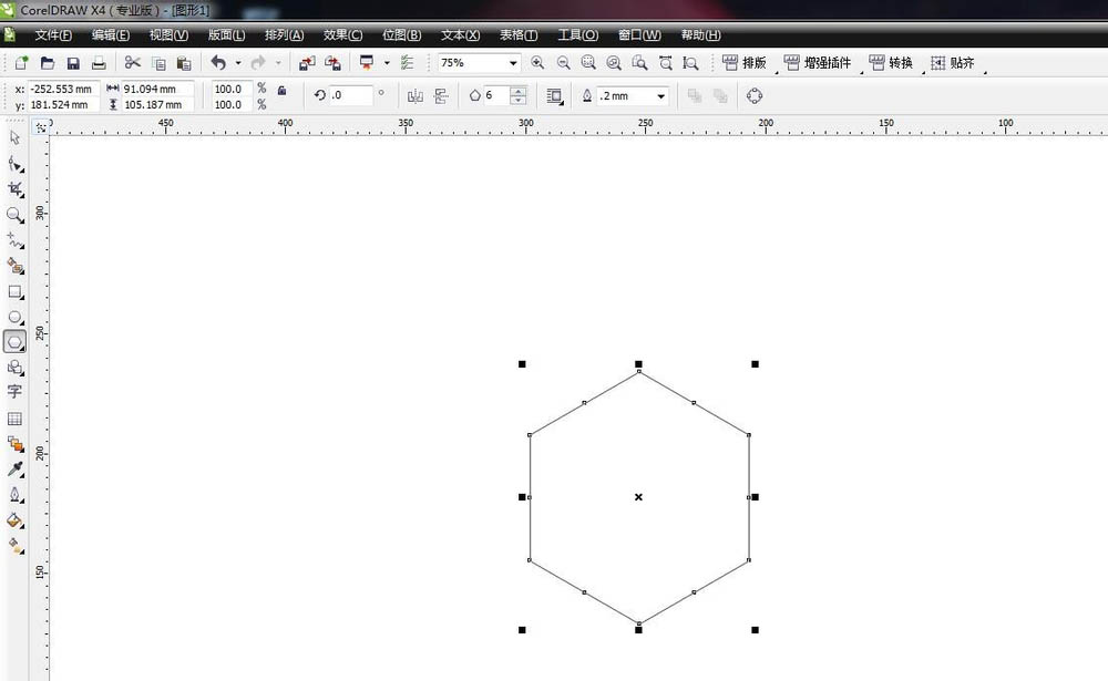 2、绘制一个正六边形。在工作区拖动鼠标绘制,按住ctrl键可以绘制一个正的六边形