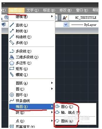 1、点击椭圆命令,或者点击绘图,点击下拉里的椭圆,然后继续菜单的几个椭圆绘图方法,也可以输入ell回车执行椭圆命令,ell是椭圆快捷键。