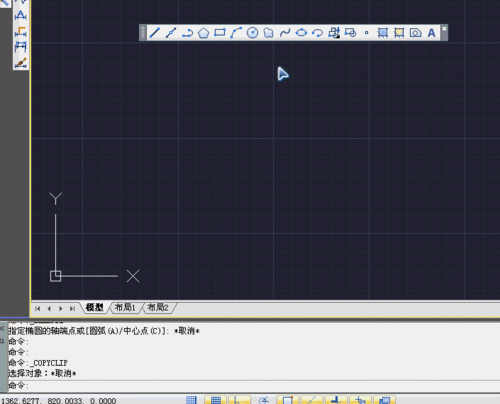 2、点击椭圆命令后,在绘图区点击一点确定长轴端点,然后点击长轴另外一点,移动鼠标点击短轴的端点得到椭圆。