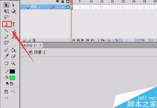 2、在工具箱里找到钢笔工具,如图所示: