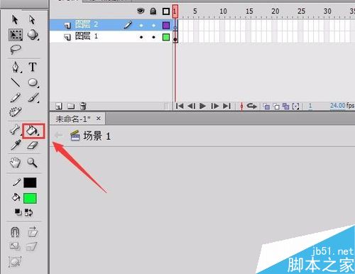 4、在工具箱里找到油漆桶工具,如图所示: