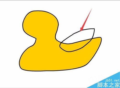 8、在工具箱里再次选择钢笔工具,在绘制小鸭子的嘴巴,如图所示:
