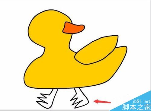 10、再在工具箱里选择钢笔工具绘制小鸭子的两只脚掌,如图所示: