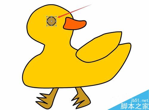 13、选择椭圆工具,按下键盘上的shift键,绘制一个园作为鸭子的眼睛,如图所示: