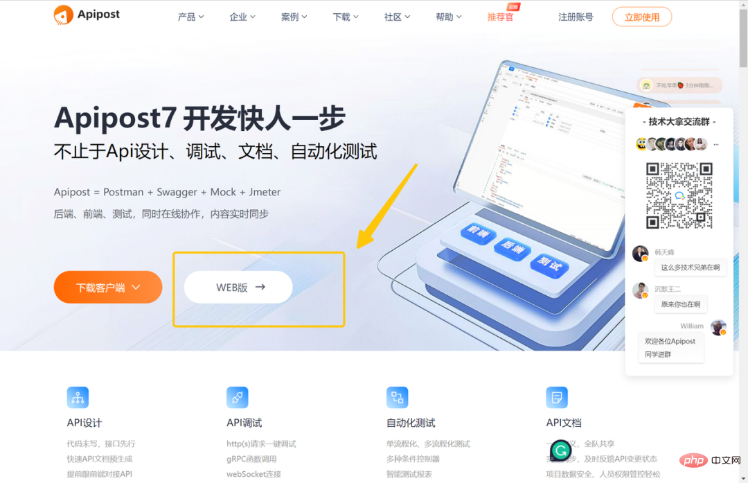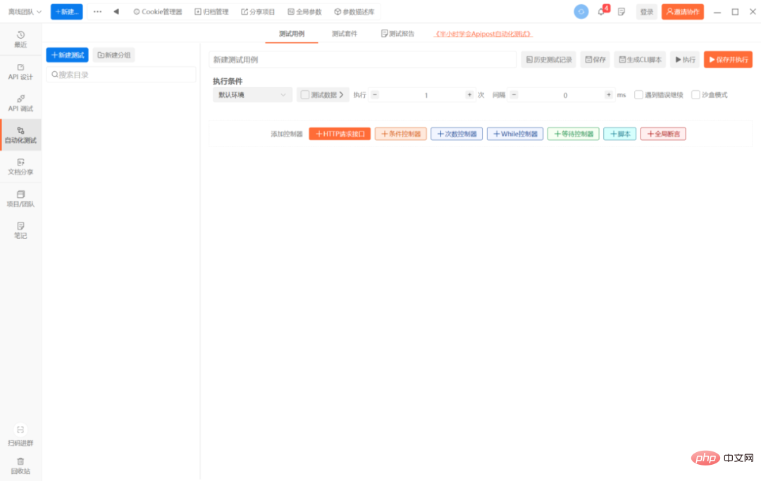众所周知,自动化测试需要学习代码,而很多测试人员对敲代码都很头疼,学习起来也相当吃力,导致很多人继续停留在点点点的功能测试上。为了解决这个问题,我在网上找遍了捷径,最近刚看到有一个工具可以不敲代码实现自动化测试,我体验了一下发现真的是!强烈安利这款工具!这款叫Apipost的接口管理工具,可以实现不敲代码的自动化测试,还可以进行API的设计和调试,界面也是全中文,而且都不用下载,官网打开就这个直接用。