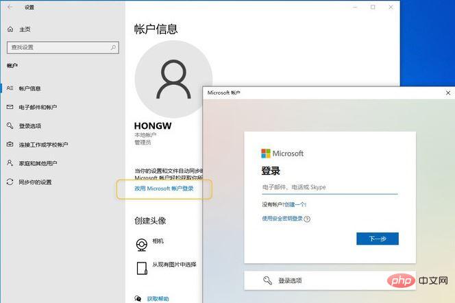 那么想要实现这一切该如何做呢?很简单,打开“设置”→“账户”→“账户信息”,点击里面的“改用Microsoft账户登录”就可以了。