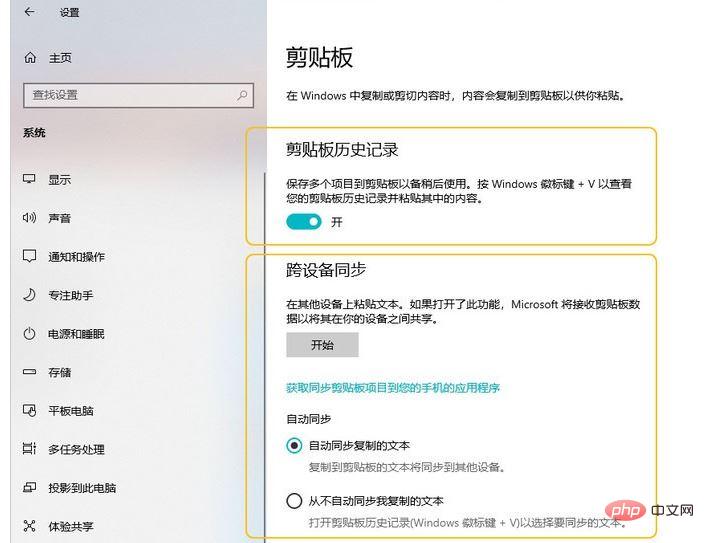除了传统的Ctrl+C / Ctrl+V之外,Win10还引入了另一项增强型剪贴板。打开“设置”→“系统”→“剪贴板”,勾选“剪贴板历史记录”,就开启了这项功能。与传统的剪贴板不同,增强型剪贴板不仅可以查看剪贴历史(Win+V),还支持跨设备剪贴板同步。打开“跨设备同步”和“系统”→“体验共享”→“跨设备共享”两项开关后,你在A机上复制的内容,就能直接在B机上Ctrl+V粘贴了。