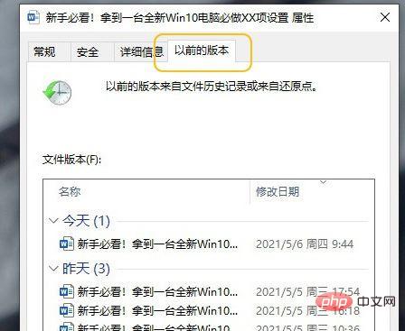 恢复环节同样也分两种情况:一是文件被删除后的恢复,二是恢复不同时间的文件版本。第一项比较简单,直接在搜索栏中输入“文件历史记录”,再根据时间找到被删除前的文件夹位置即可。第二项可直接在文件上右击鼠标,选择“还原以前的版本”,就能恢复当前文件的某个时间版本。