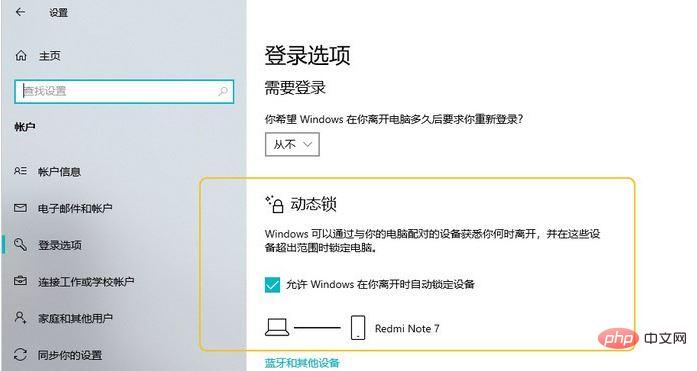 首先打开电脑和手机的蓝牙功能,配对并连接好。接下来进入“设置”→“账户”→“登录选项”,勾选“允许Windows在你离开时自动锁定设备”。设置完成后,当你的手机距离电脑过远时,就会自动触发锁屏,特别适合办公室的电脑使用。