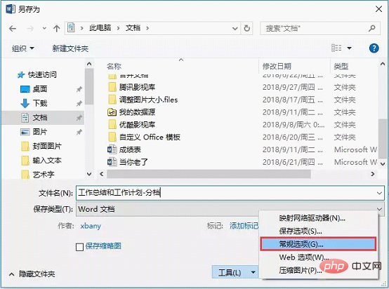 (1)打开要加密的Word文档,单击左上角的【文件】-【另存为】选项。打开“另存为”对话框,单击“工具“按钮,在弹出的菜单中选择”常规选项”。