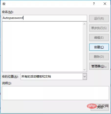 (2)在“宏名”文本框中输入“Autopassword",单击”创建“按钮。