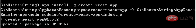 在cmd命令行中输入: npm install -g create-react-app 等待其安装