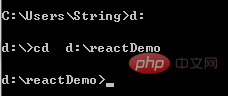 在cmd命令行中输入:cd d:\reactDemo (进入D盘中的指定文件夹)