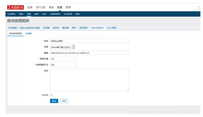 然后在刚才的check_exe_status模板中,创建自动发现规则